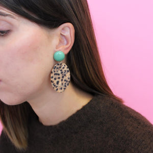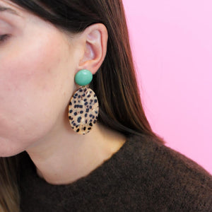 Boucles d’oreilles Ovales – Vert sauge & Léopard