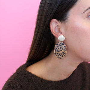 Boucles d’oreilles Ovales – Bleu nuit & Léopard