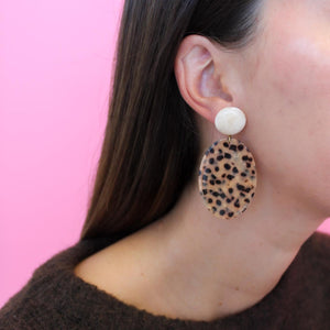 Boucles d’oreilles Ovales – Fuchsia & Léopard