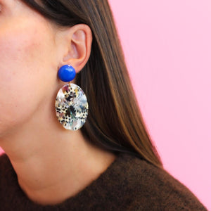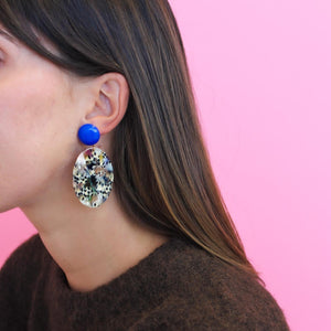 Boucles d’oreilles Ovales – Bleu Roi & Terrazzo