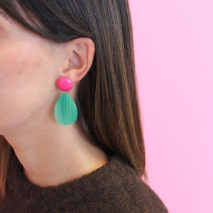 Boucles d’oreilles Goutte - Fuchsia et Vert